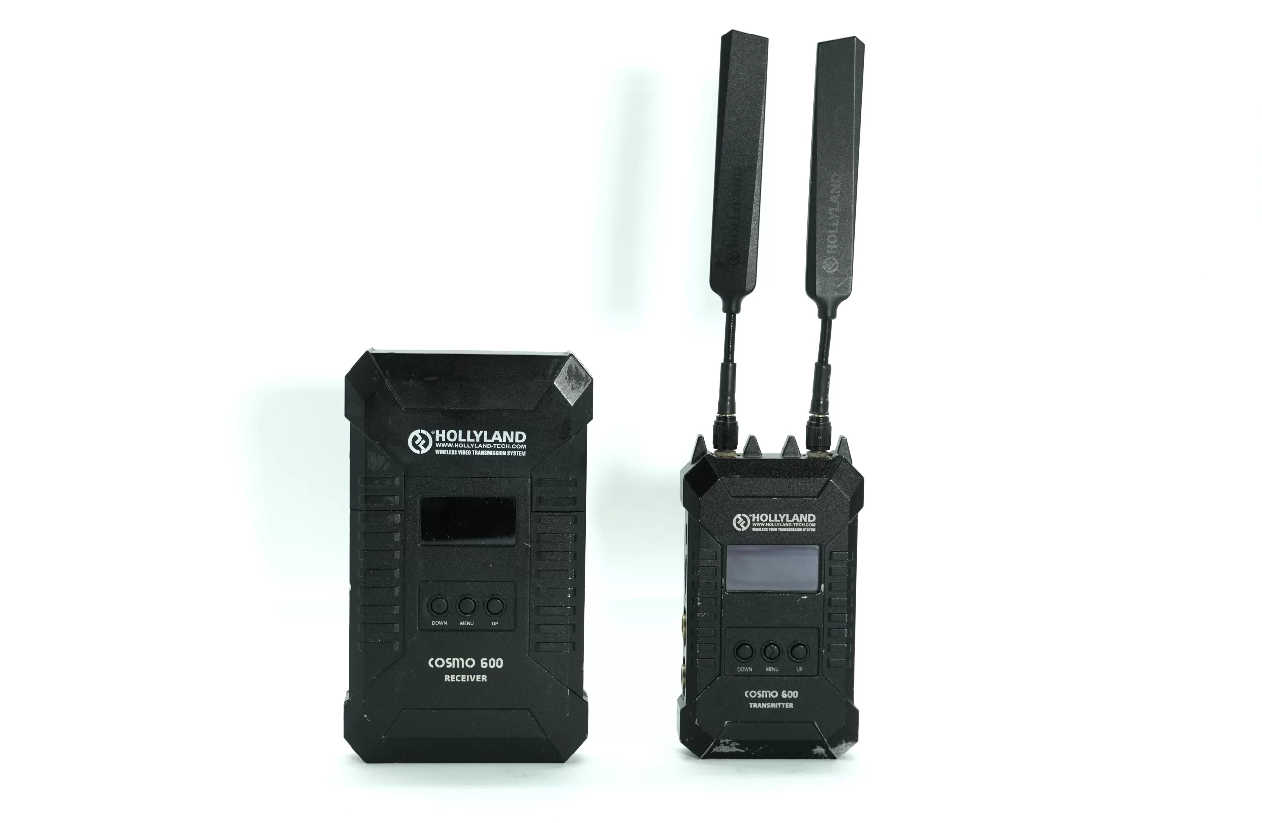 Kit de transmissão sem fio Full HD com baixa latência e alcance de até 200 metros, ideal para produções profissionais.